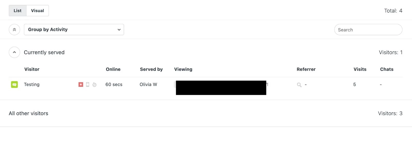 As of right now, I can only see people who started a chat and I cannot see any active customers even if it shows I have 3 customers.