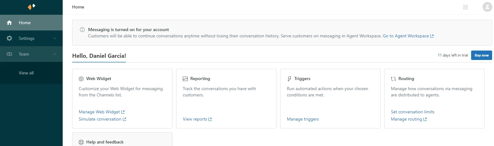 If you have the messaging/agent workspace enabled then the History tab in the Chat dashboard won't apply. If you don't have it enable then the History tab will be shown on the left side of your Chat dashboard.