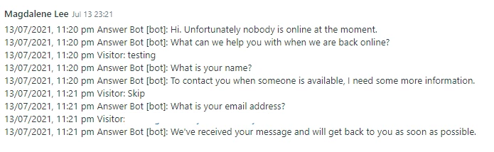The issue I am facing is that when iOS chat with ChatBot after operating hours, Dashboard doesn't send the complete chat like the image below. iOS only send the message I typed first so in the below image case iOS will show this :