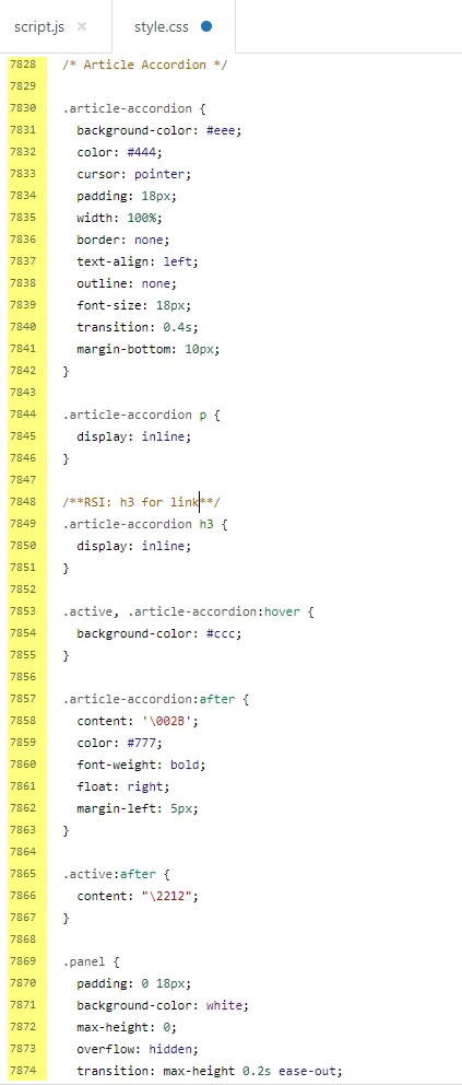 <h2 class="accordion active">Section Three</h2>