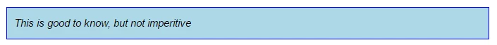 <blockquote class=”fyi”>This is good to know, but not imperitive</blockquote>