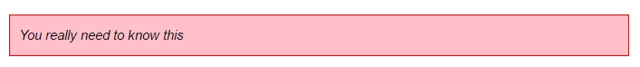 @ eagleapk don't know much about CSS but I'm able to call out things by making a one-cell table and adding color.
