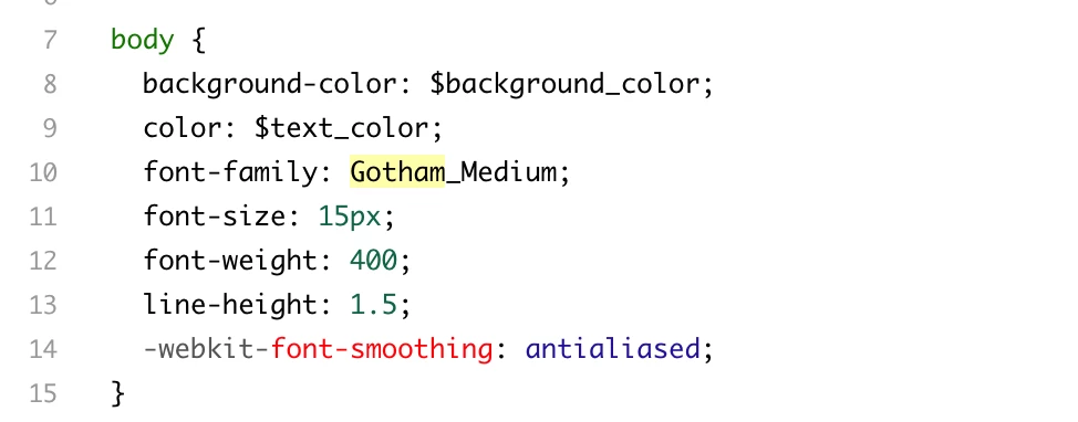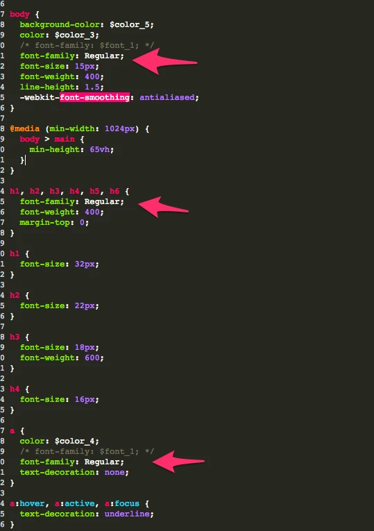 - Go to the Body { code. Add in the following code. The $font_1; should be there already. Replace this. And of course, replace your_webfont_name. > /* font-family: $font_1; */