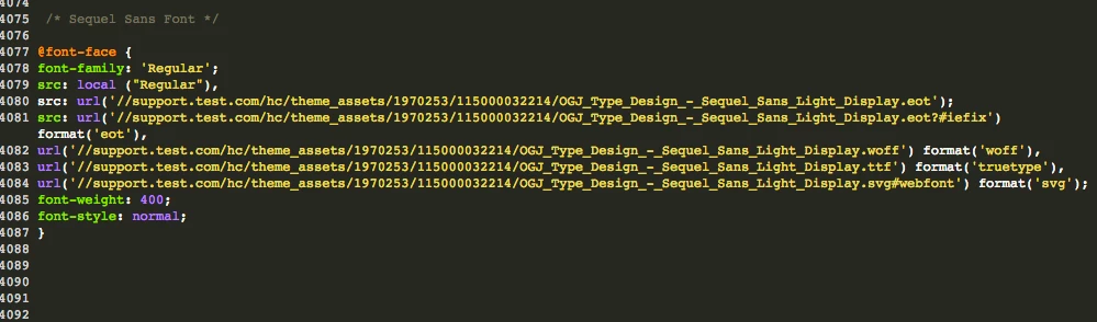 Now you have replaced most of the fonts within the CSS. Your Help Center will now appear in your (custom) font. If you find any text that isn't showing in your font, look in the CSS for 'Font-family: not-your-font; And replace this.