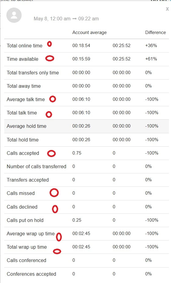 Mostly, it's a recap of the attached report which we can get from the Talk Dashboard when you click on MORE, but it's per Agent. . . I'd like to see this with multiple agents in there. and it doesn't need to be live. A historical look over time is appropriate.