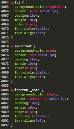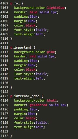 Add the following code at the end of your CSS file or create your own styles with your own format. Just make sure you have a defined class created for your colored note.