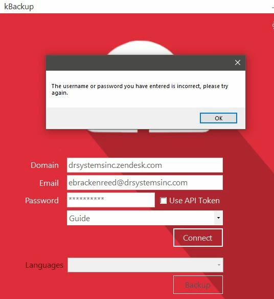 - Enter your Zendesk user email into the Email field