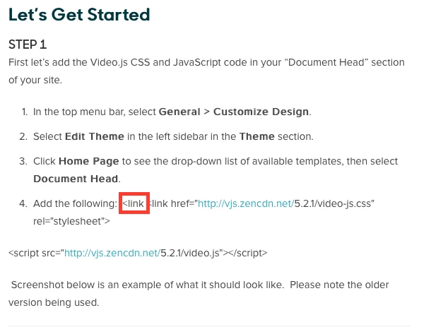 First let’s add the Video.js CSS and JavaScript code in your “Document Head” section of your site.