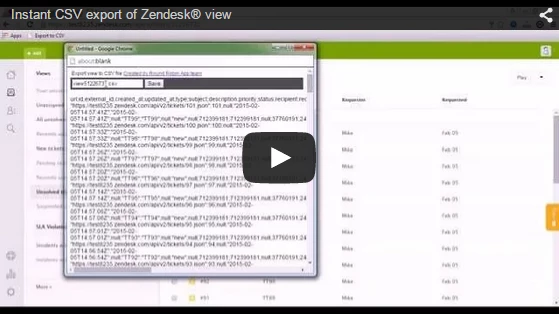 To work around this, we use small javascript (bookmarklet) that receives the data via Zendesk API and saves it to a CSV file.