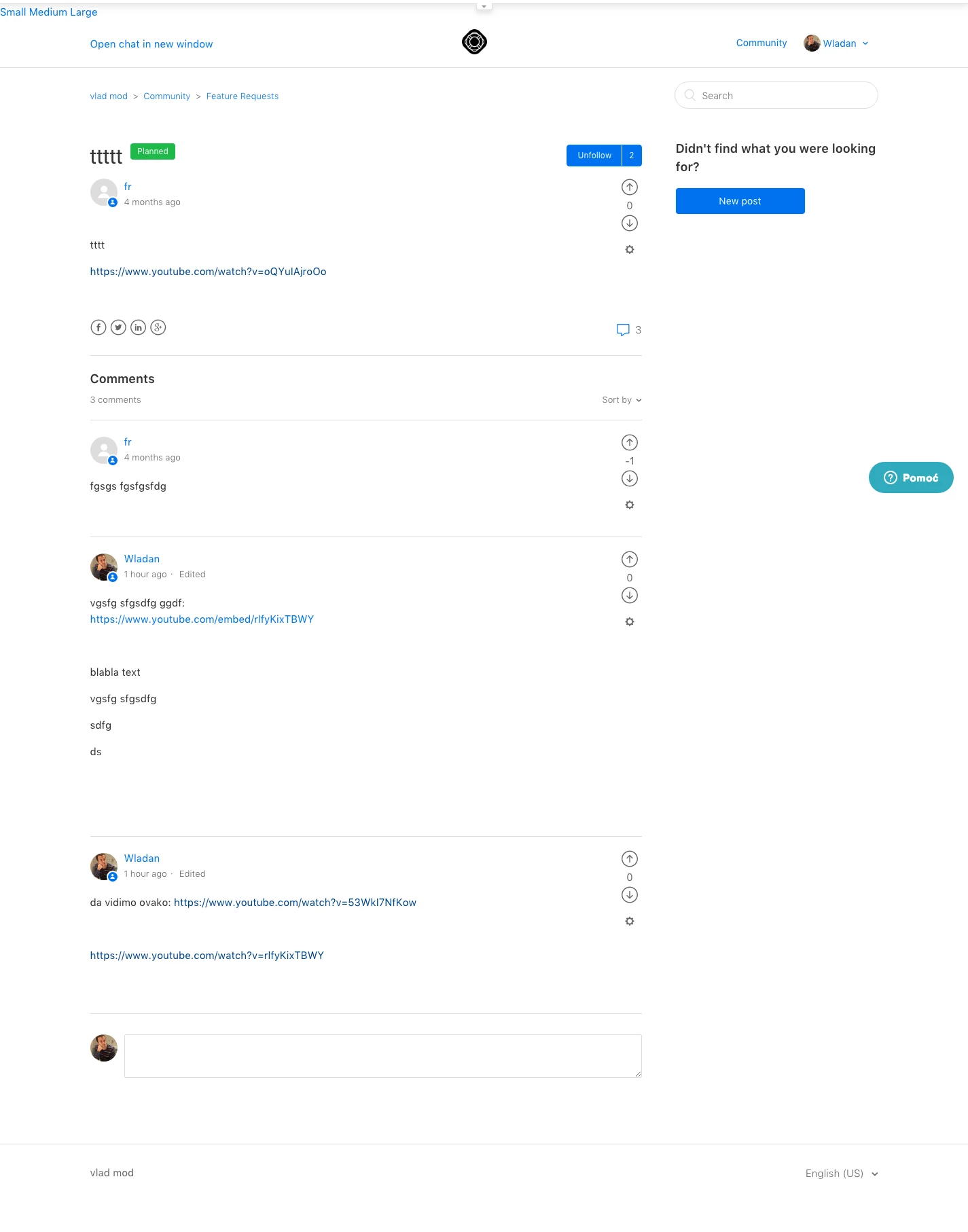 It will grab all YT links from Community comments/posts and create an iframe from.