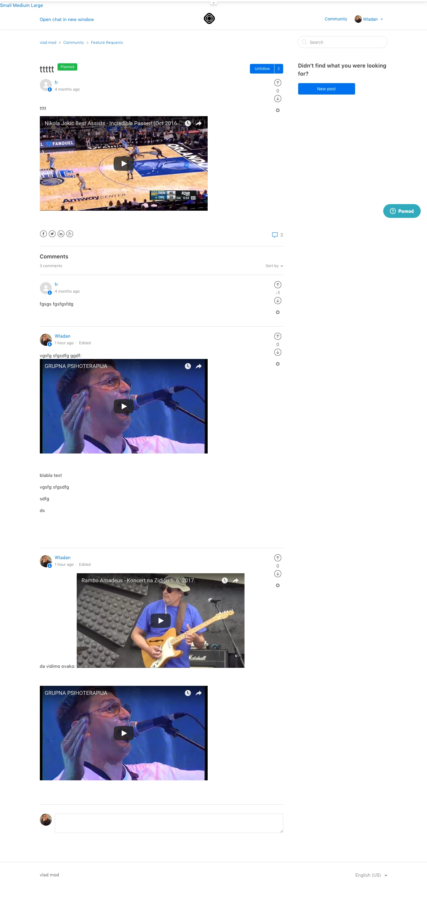 Just noticed this post and decided to write this short tip how to achieve that your users can post embedded YouTube, Wistia, Vimeo videos in Community posts/comments.