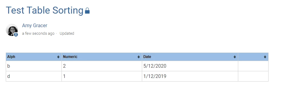 - At this point, tables will sortable, but there will be no visual indication that the sorting is available. To add these visual cues, you must apply the tablesorter class your table as follows: