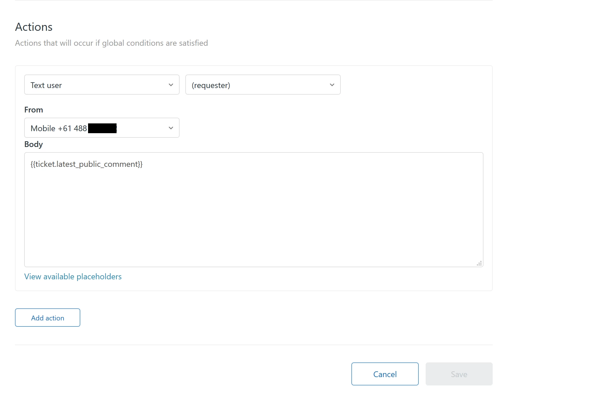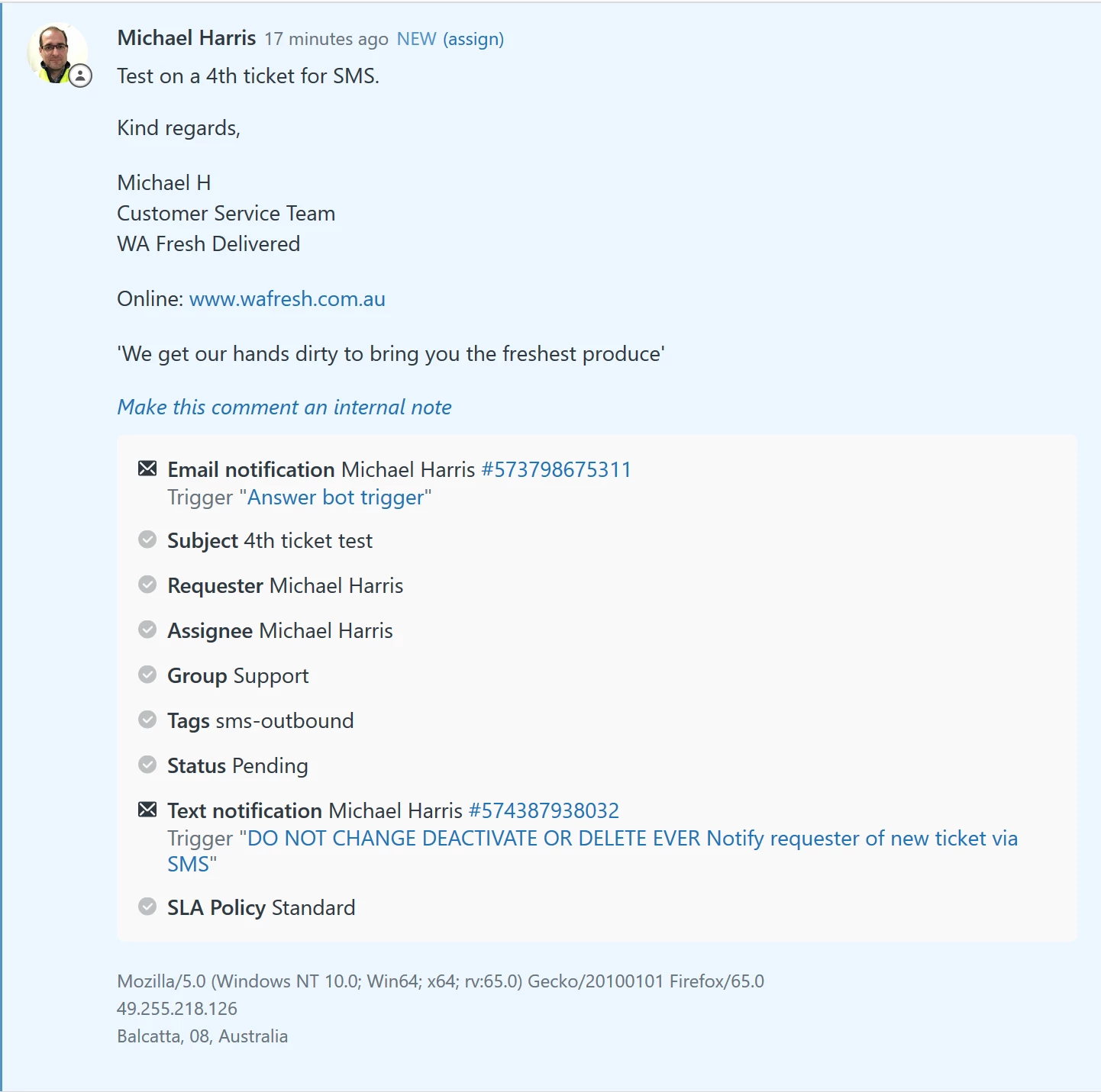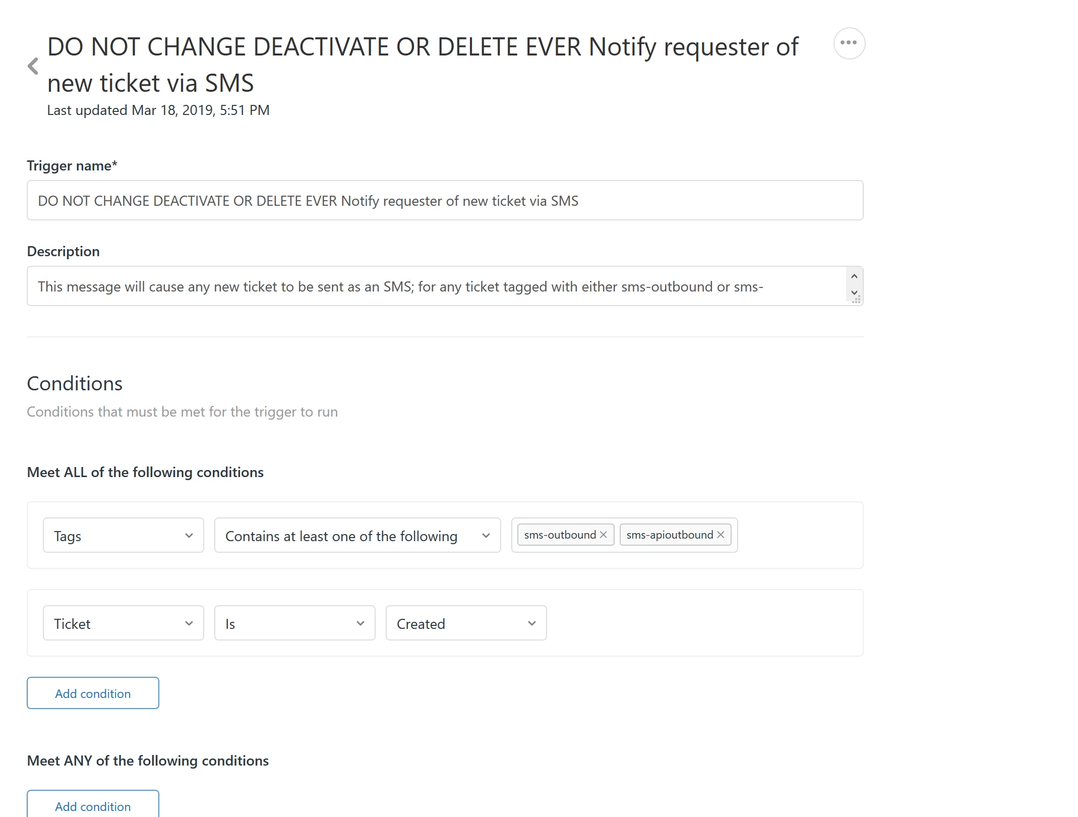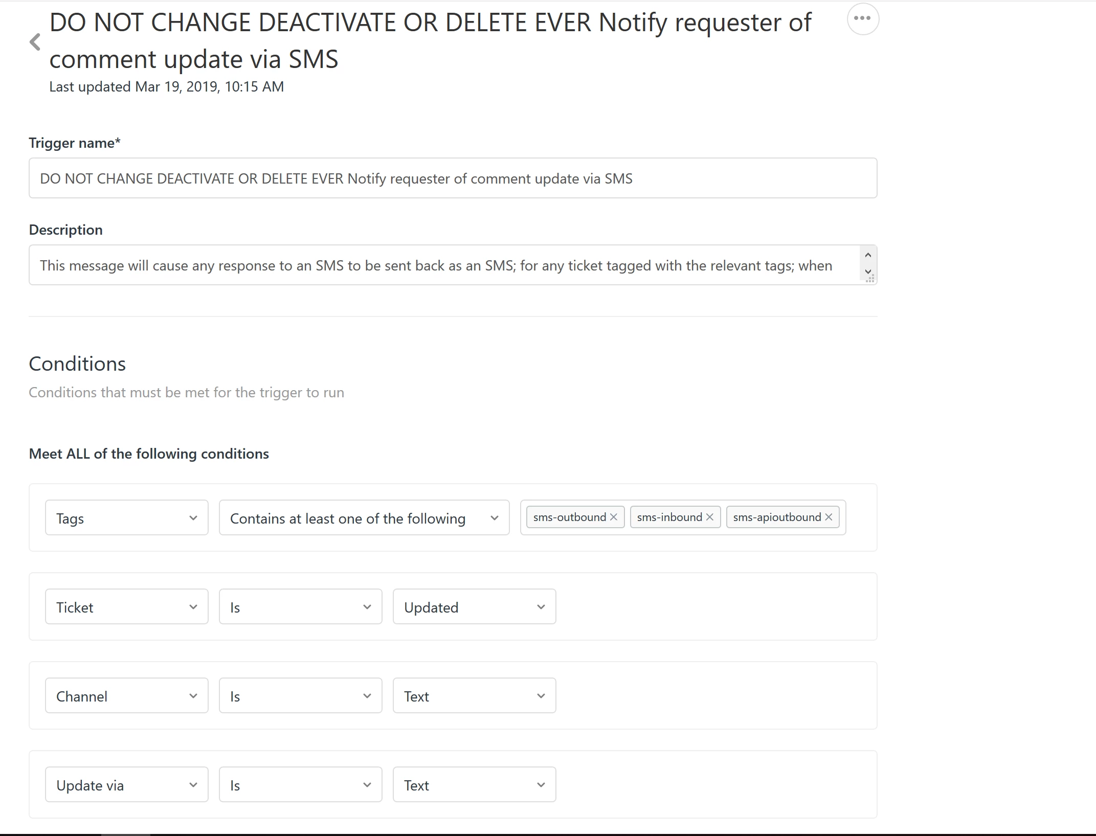 Trigger that is supposed to cause outbound SMS on an update to a ticket, but isn't
