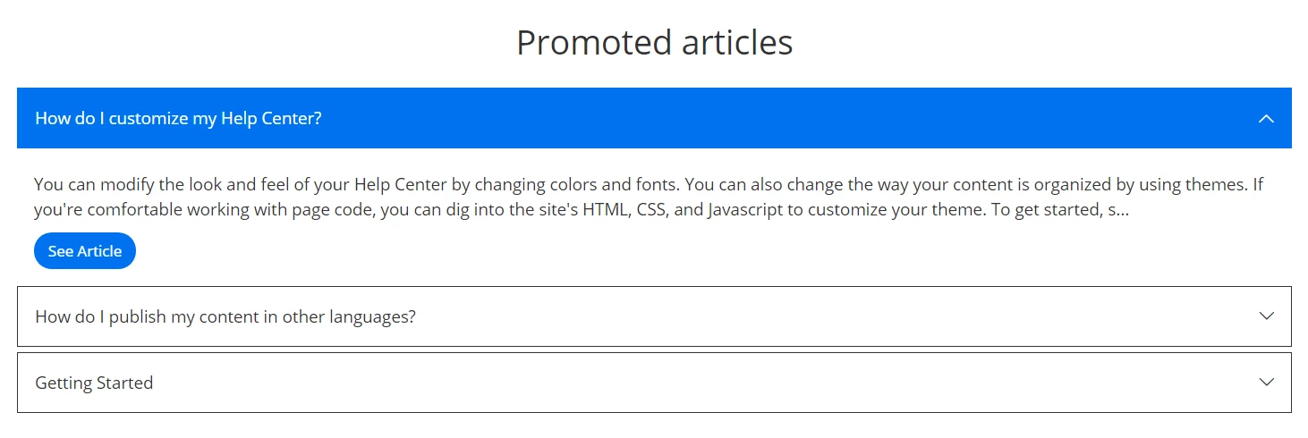 Copy the promoted article code and paste it on your Help Center templates