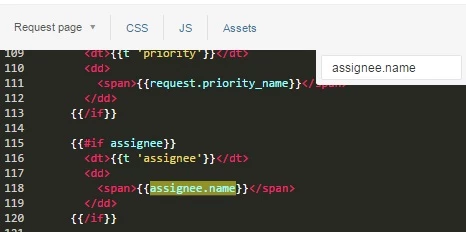 On the Request Page, search for the {{assignee.name}} placeholder.