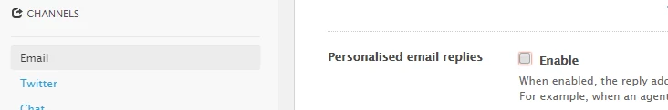Under Admin>Channels>Email>Personalised Email Replies, deactivate the option.