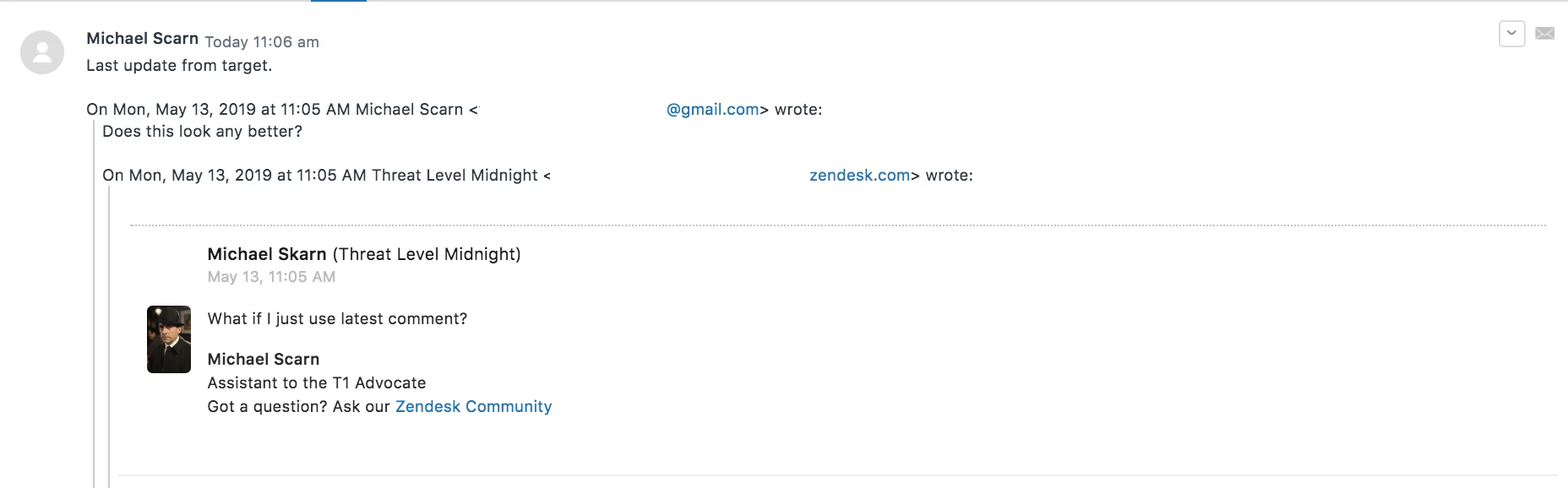Below I will walk everyone through the appropriate steps for threading the target’s response into the existing Support ticket.