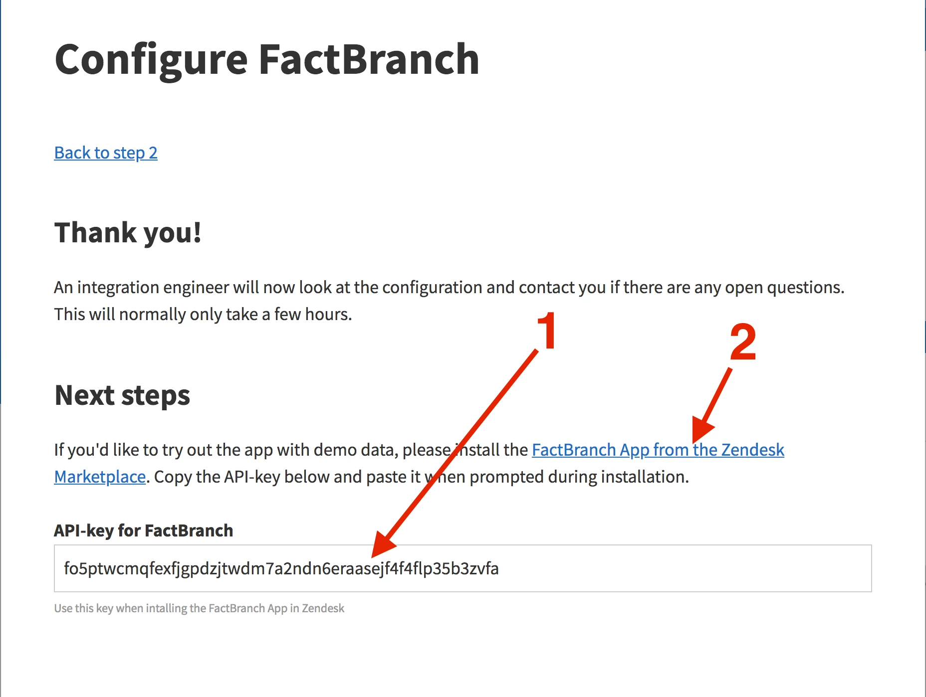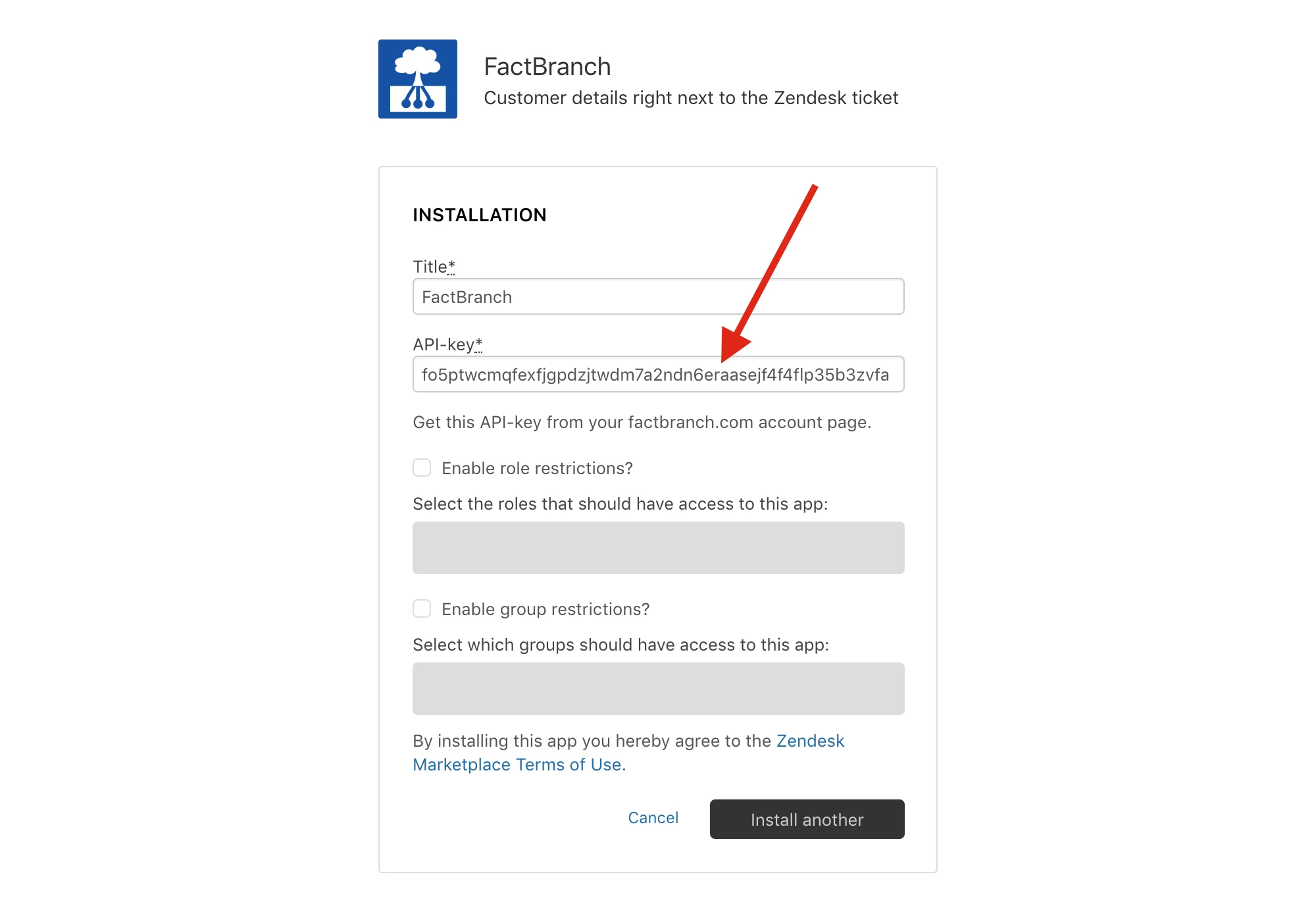 Copy the FactBranch API-key and then click on FactBranch App from the Zendesk Marketplace.