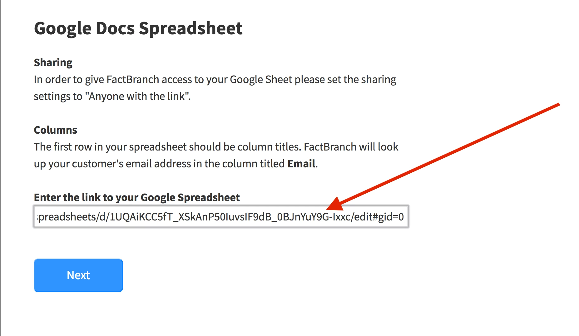 Paste the link to your spreadsheet that you’ve copied previously: