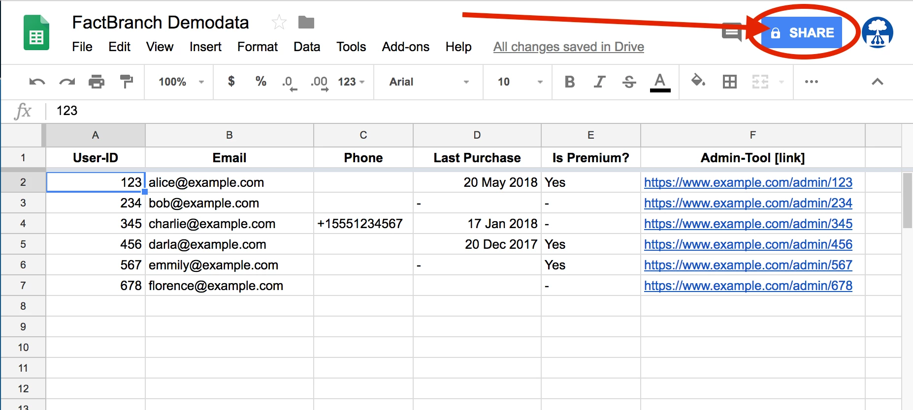 2) Share the spreadsheet with the app