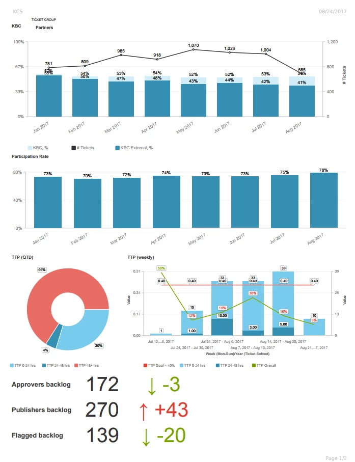 Also, we are tracking article backlog (is it growing or reducing) and KCS activity per engineer.