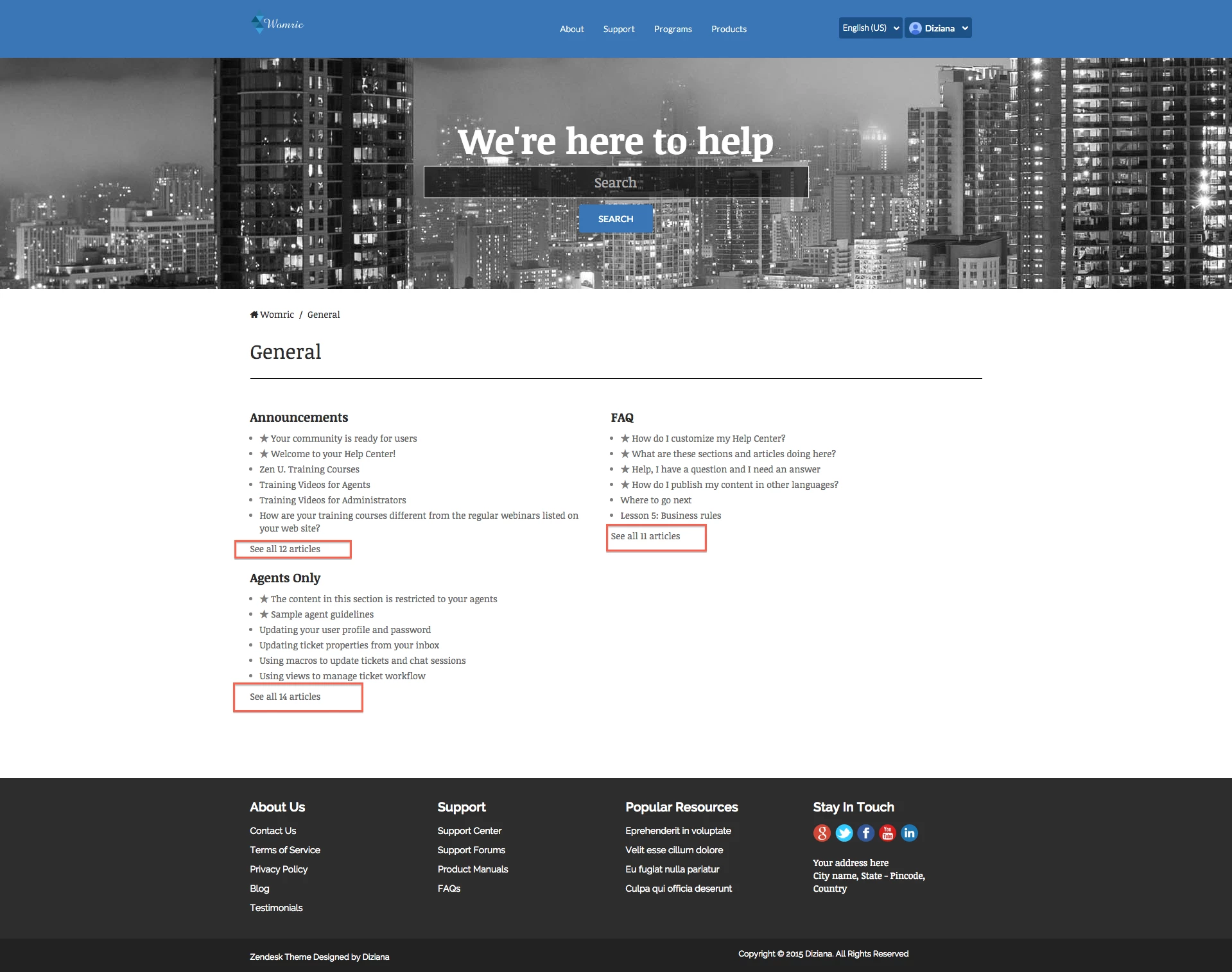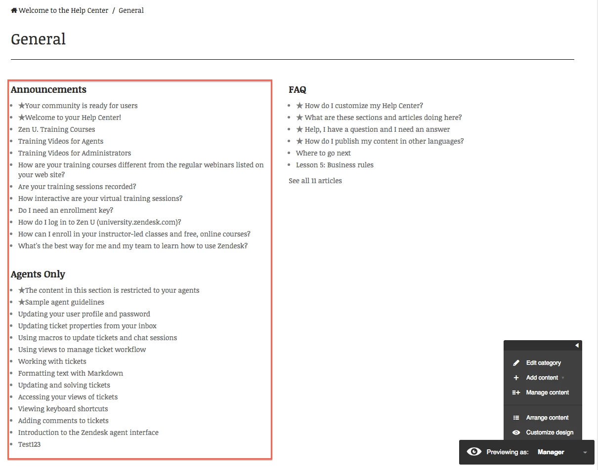 Zendesk Component Reference: Category with section and article list.