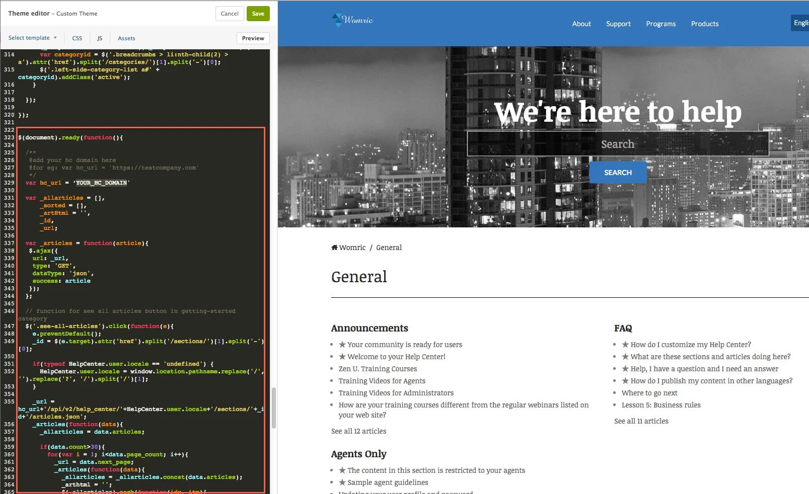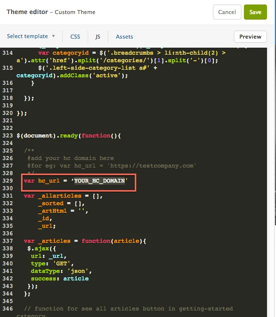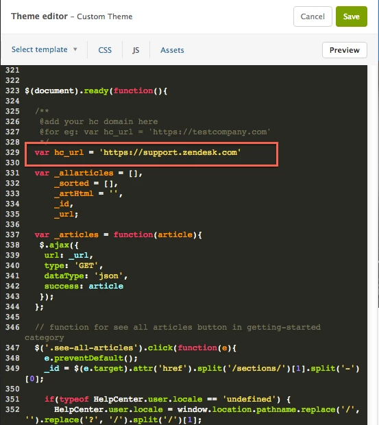 - There is a variable named var_hc, add your Zendesk URL there.