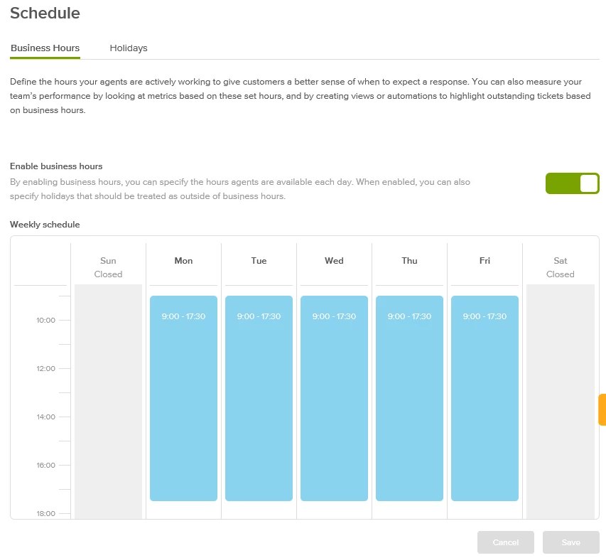Finally, here is how we have setup our business hours: