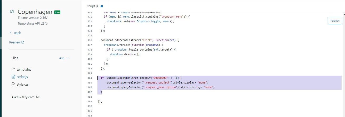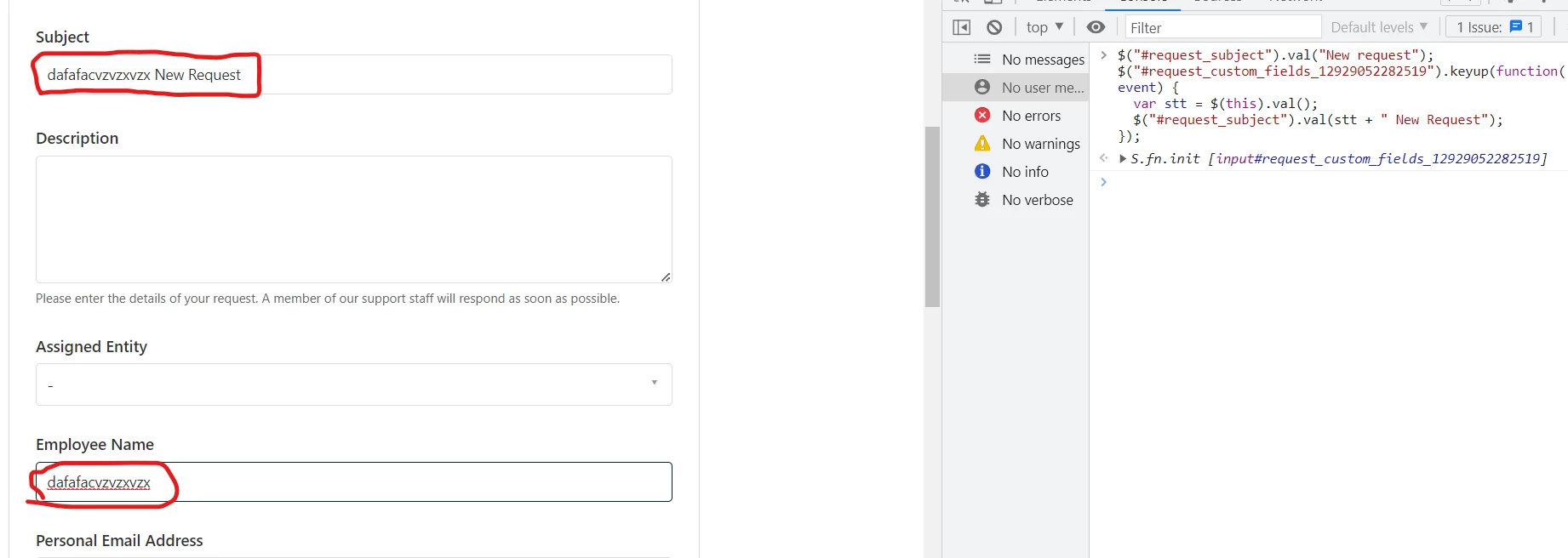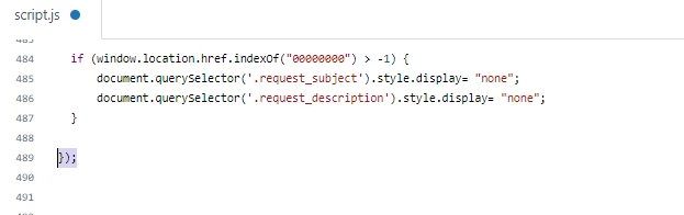 iii). Add the shared code to hide subject and description field on new request template.