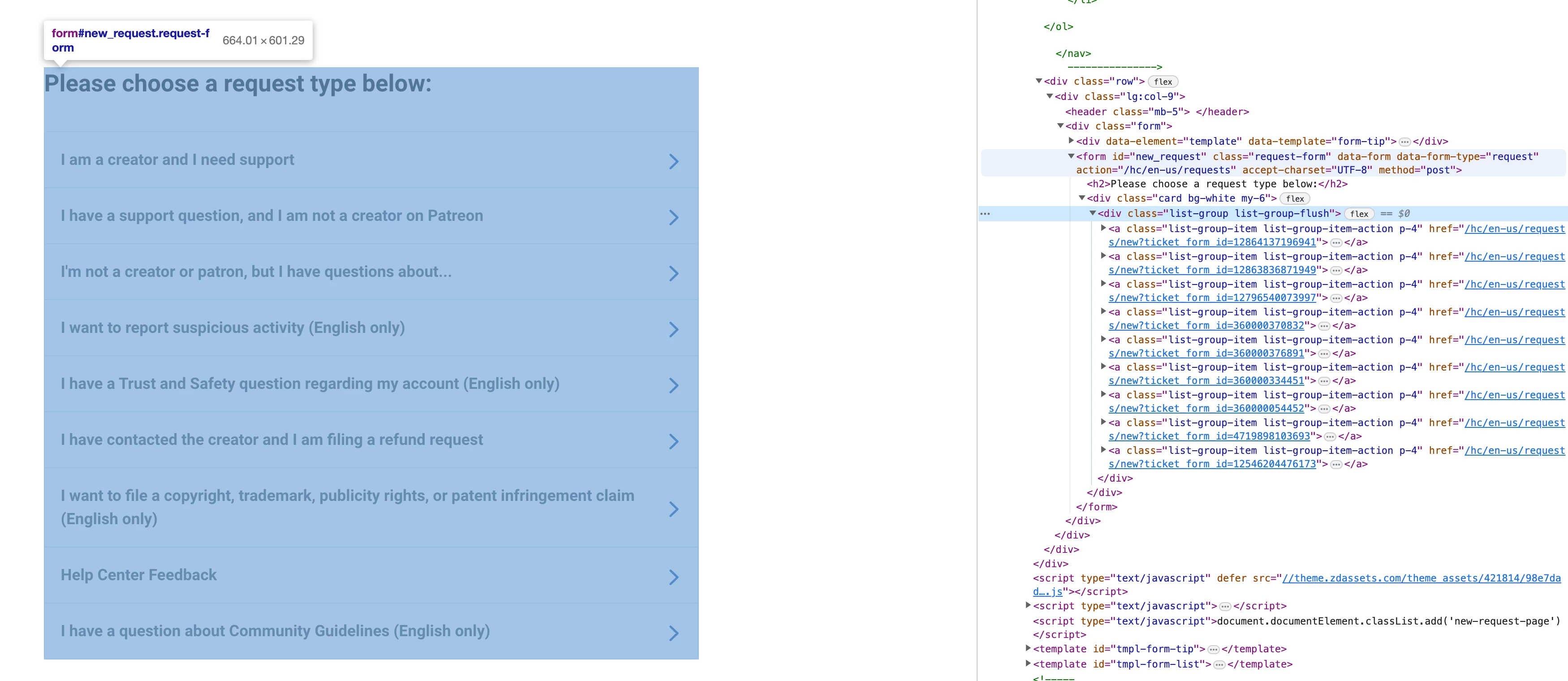 Template: New Request page