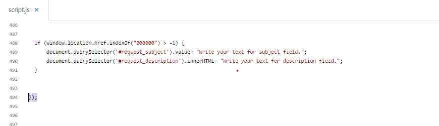 document.querySelector('#request_description').innerHTML= "Write your text for description field.";they can use this line instead of the above line of code.