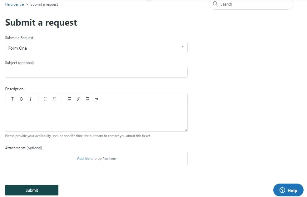 Form One - With subject and description field.