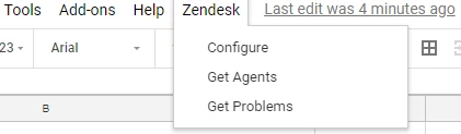 - Click on Zendesk > Configure from the spreadsheet to load the Settings menu.