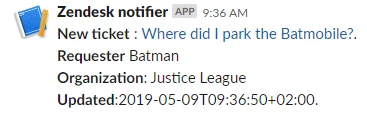 The official Zendesk-Slack integration is very powerful, offering out-of-the-box two-way communication in a stylish way, but sometimes you just want a simple notification setup.