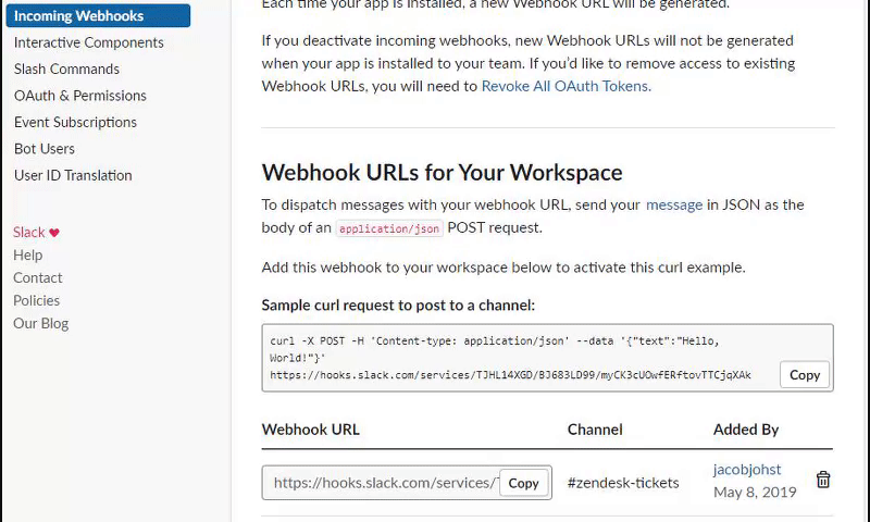 Copy the webhook URL, we need that for the next step in Zendesk.