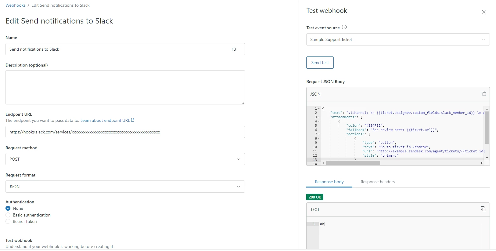 Now we have created a link from Zendesk to Slack, next we need to create the trigger that will push messages through this connection.