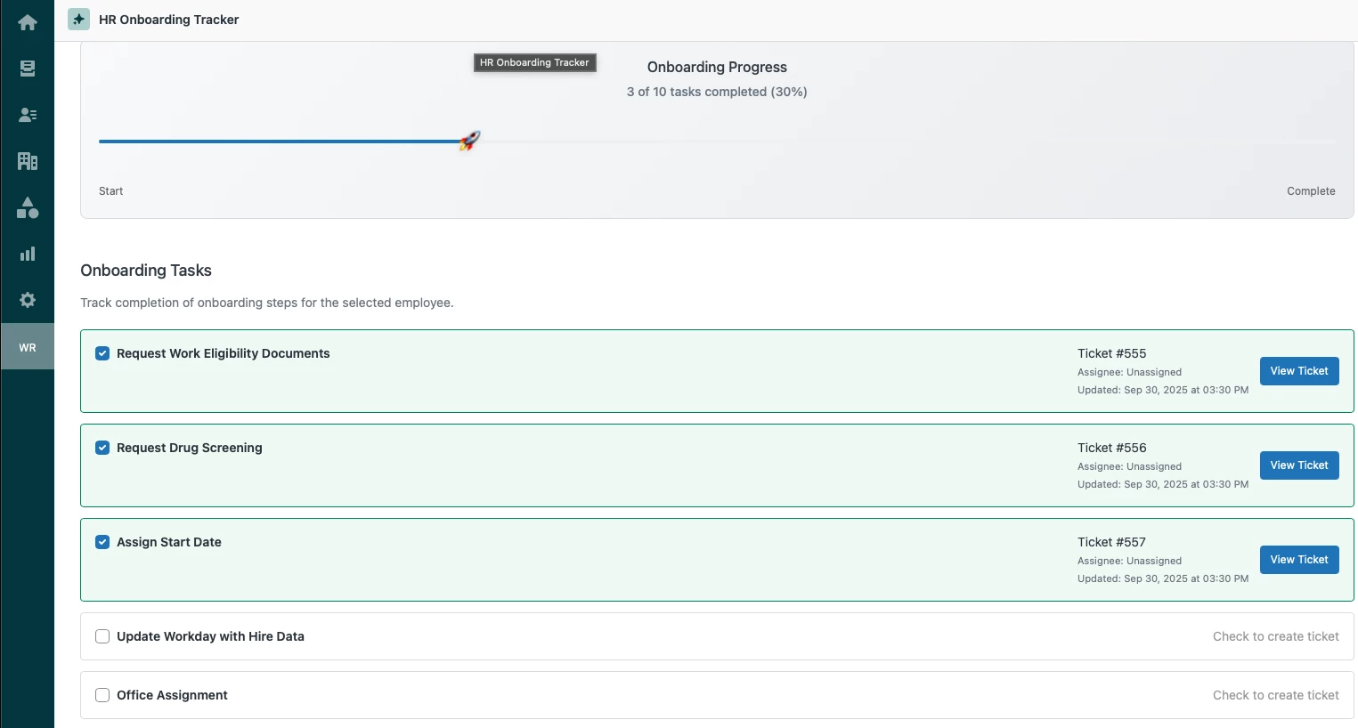 User onboarding requires coordination of many teams, each doing tasks that may be sequential or may be possible to execute in parallel. Agents need to be able to see where in the process a new hire is and what steps need to be completed to successfully onboard them,