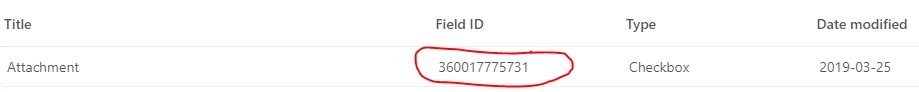- Note the field ID shown in the list of ticket fields for the new ticket field