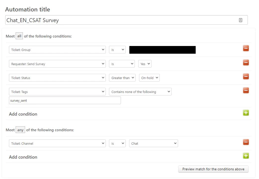 I wanted to share the method I use to restrict sending surveys to customers only if they haven't gotten a survey from us in the past 30 days. I wanted to give Credit to this article from Graeme - https://support.zendesk.com/hc/en-us/community/posts/115007818067-Restricting-Satisfaction-Surveys-by-Date - which got me part way there but there was enough of a difference I felt was worth sharing the setup I came up with to accomplish this.
