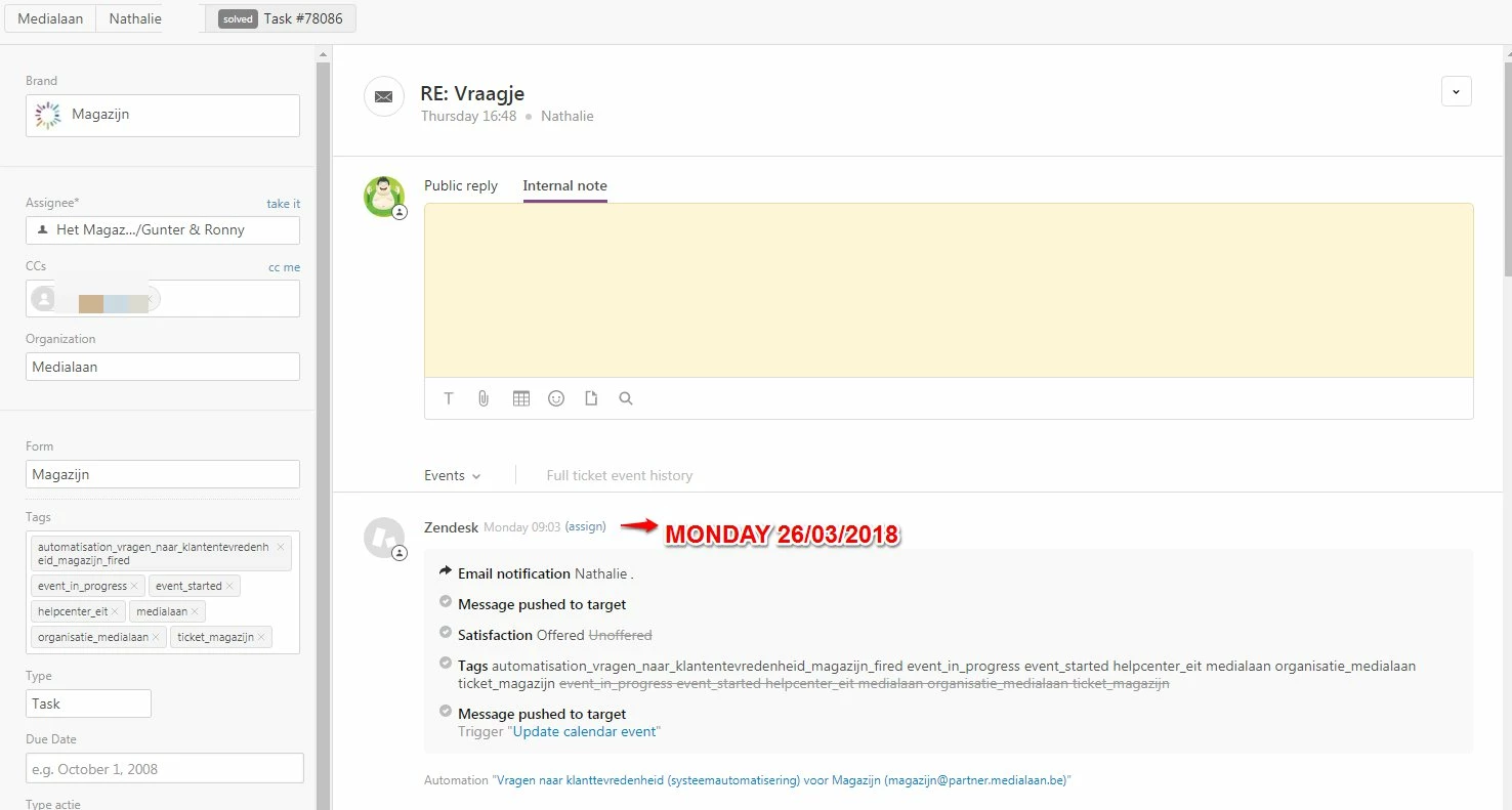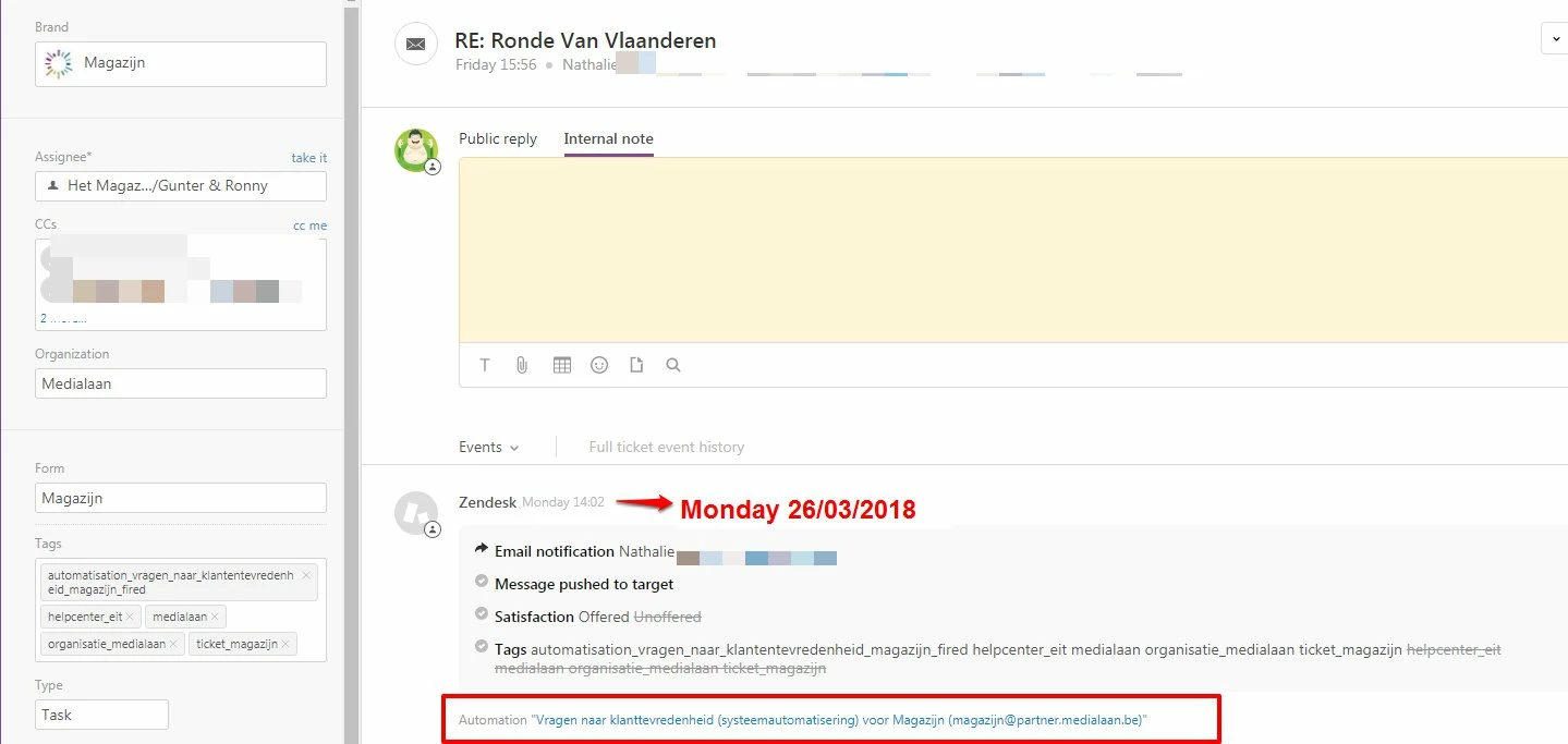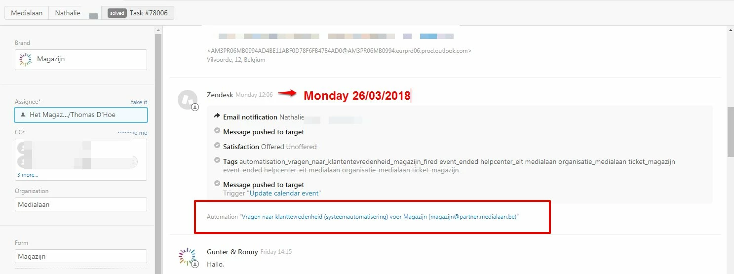 - Change the standard automation to record the satisfaction notification date