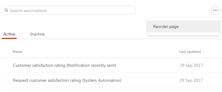 Ensure this new automation appears before the standard automation. Select 'Reorder page' from the more actions menu. Drag the new automation above the system automation.