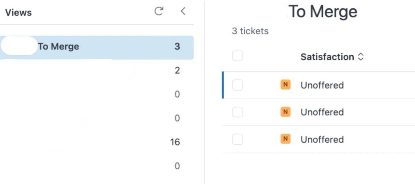Create a view that will display all the tickets identified as to be merged (aka with the tag “multipleticket”). This will allow your agents to merge all tickets in a row before taking care of the tickets during the day.