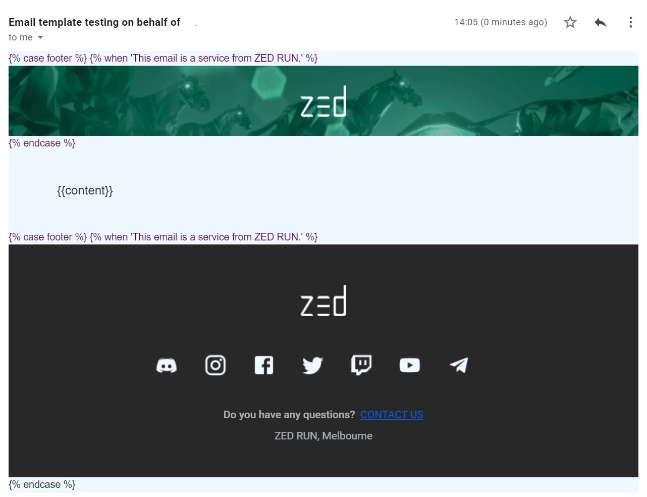 Note that if/when you load them in your browser to view, you will see all the brands' email tops and bottoms as your browser does not parse the unique Zendesk tags that control which brand's top/bottom wrapper is used for a given brand's email.
