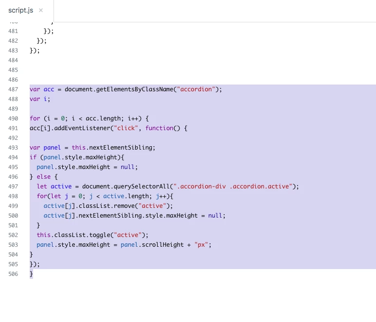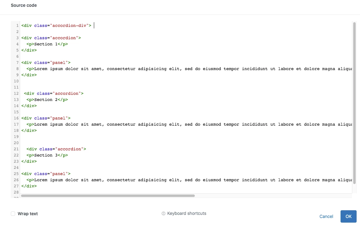 NOTE: You can copy and paste the same snippet to add as many accordions as you want.