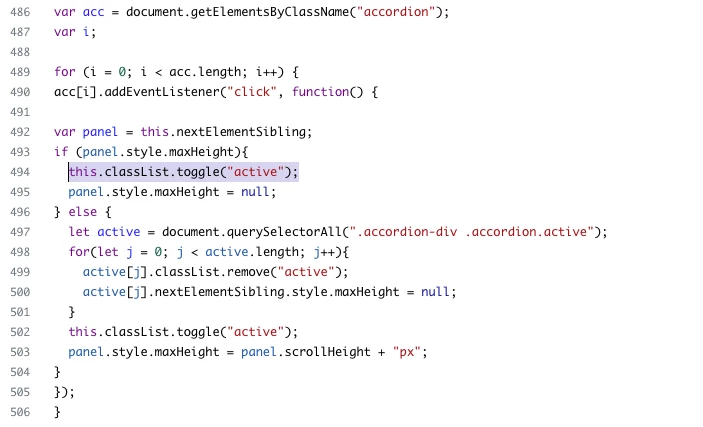 var acc = document.getElementsByClassName("accordion");