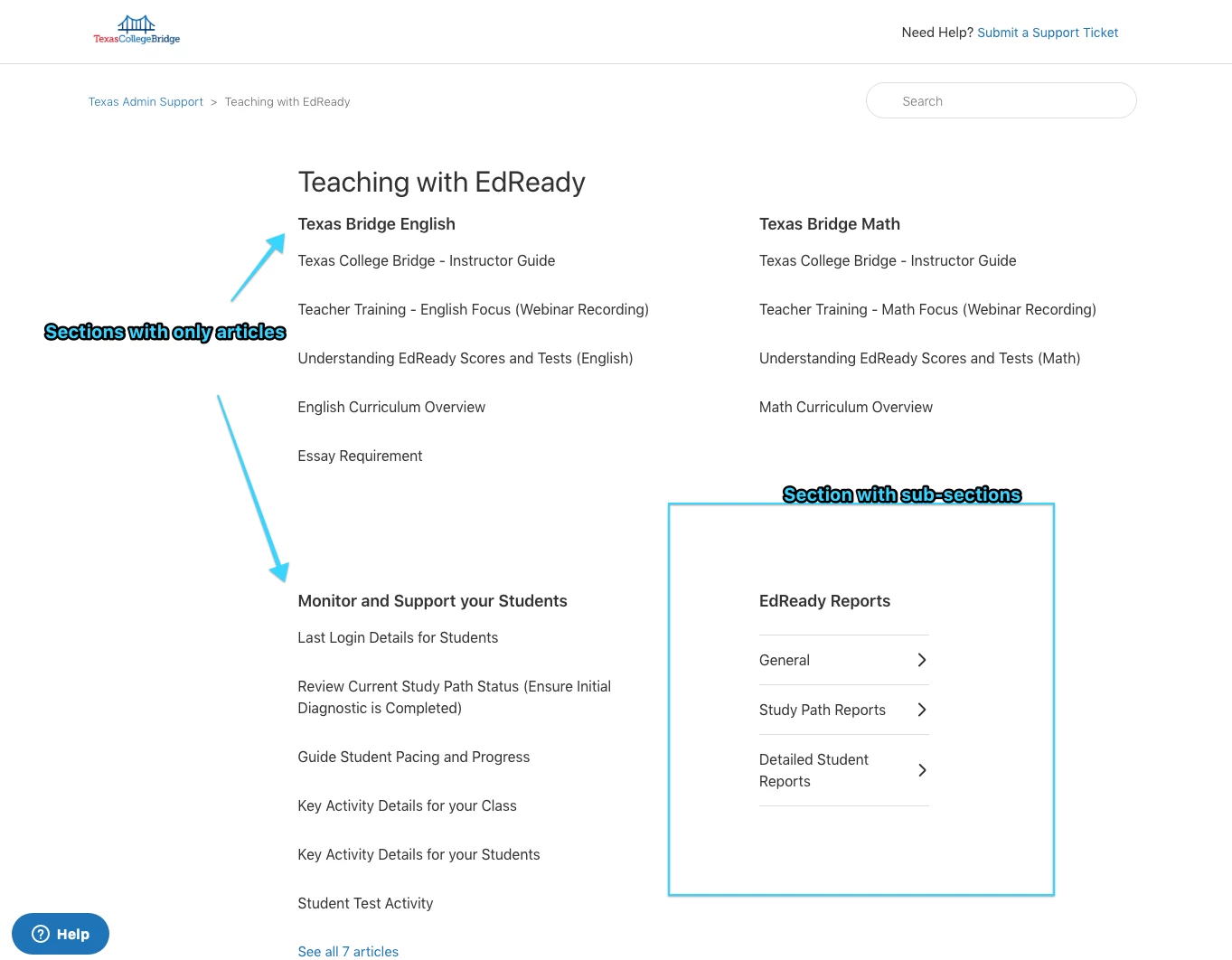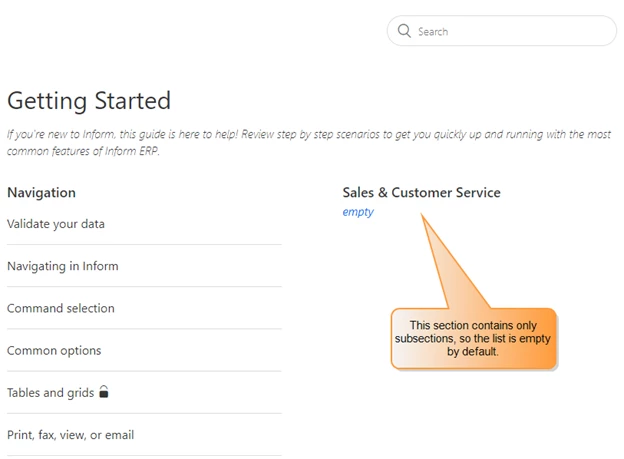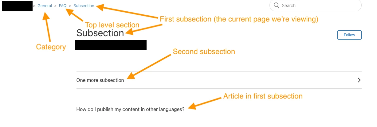 With Flexible Hierarchies, it is possible to create Sections that contain no articles, only Subsections. These Sections will appear empty on the Category page, which could be confusing for your end users, as there is no indication that more content is available.