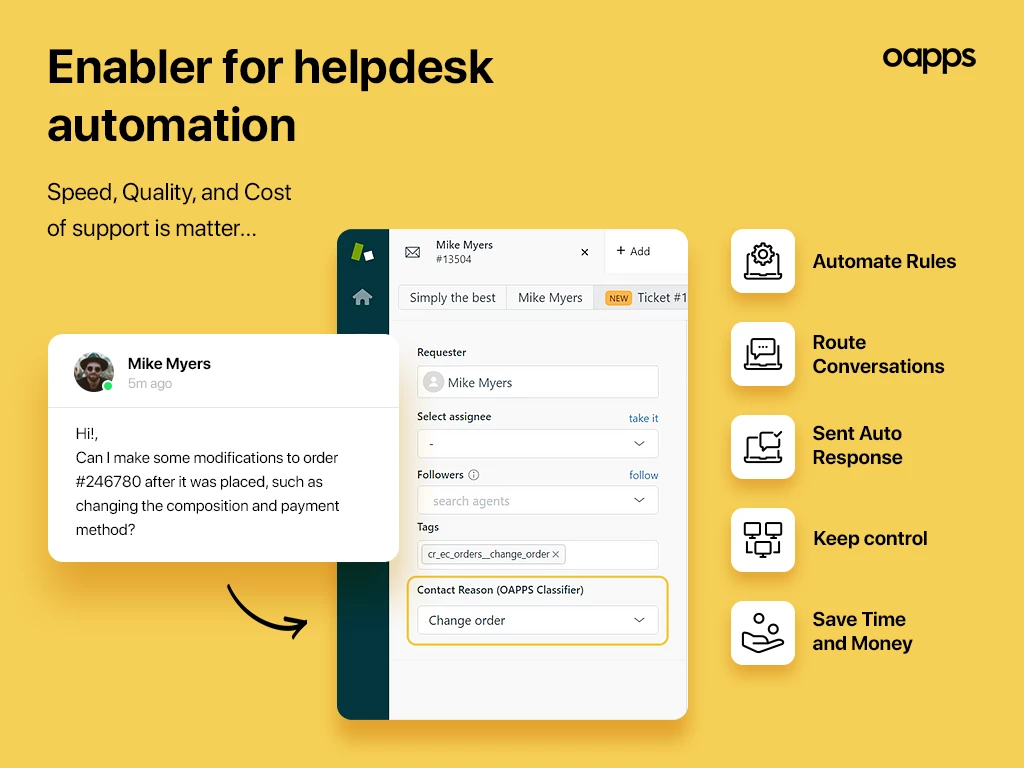 How can you help yourself in this race and, at the same time, keep loyal and grateful customers? Smart classification of requests and subsequent Automation of key helpdesk processes will help us.