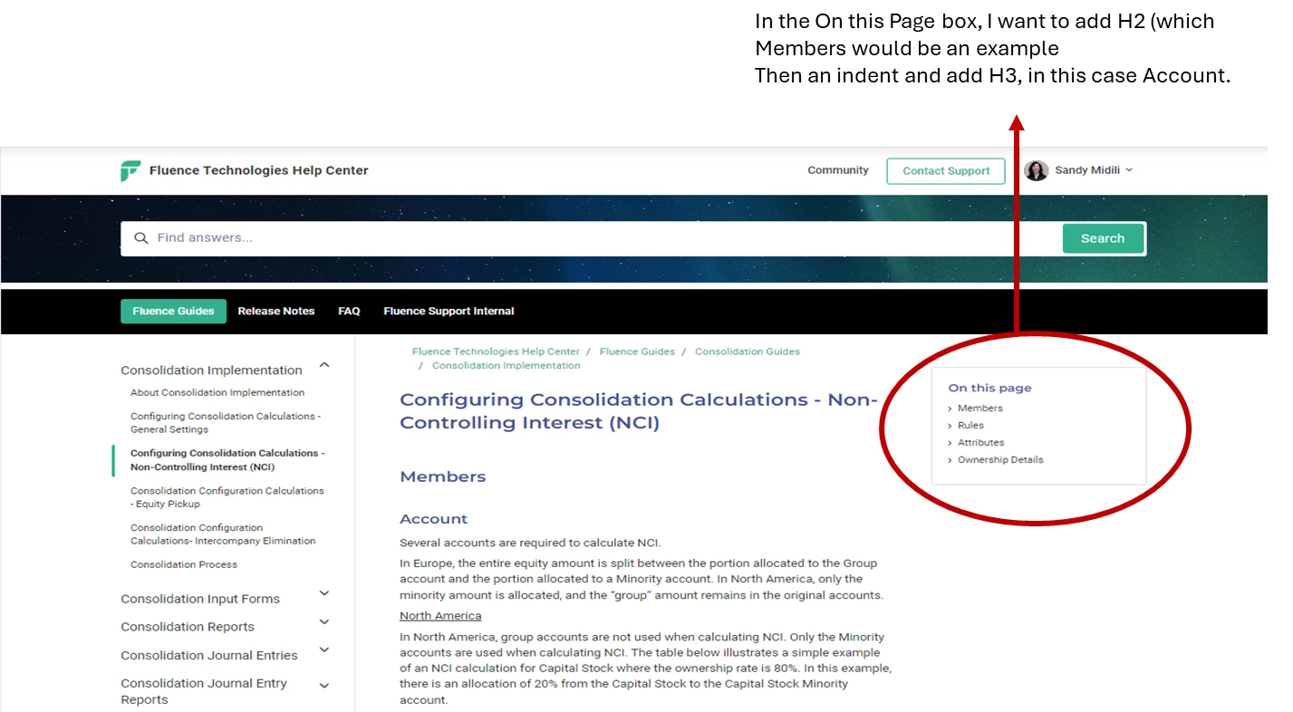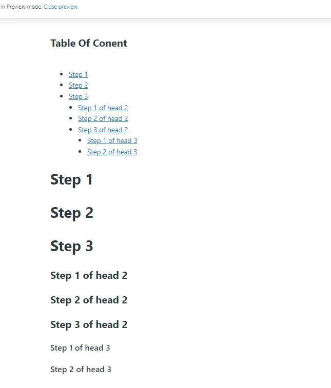 Here's a way to create a table of contents in your Article template, that ensures subheadings will be properly indented instead of aligned with the main headings