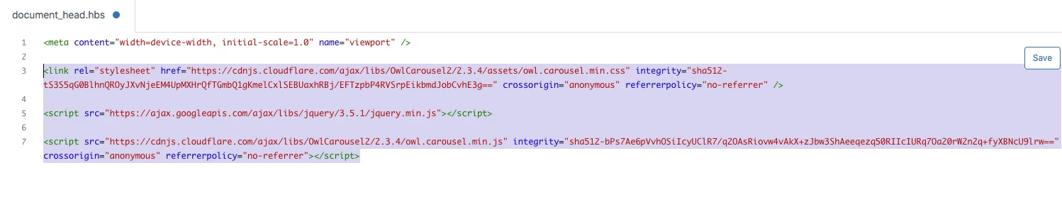 1). Copy the given CDNs to your document_head.hbs file.
