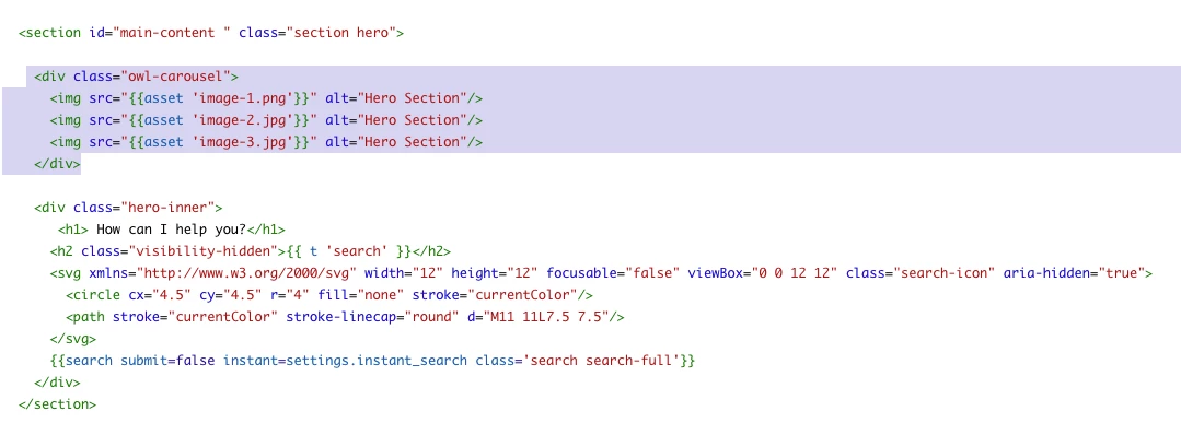 <div class="owl-carousel"> -- hero section HTML -- </div>